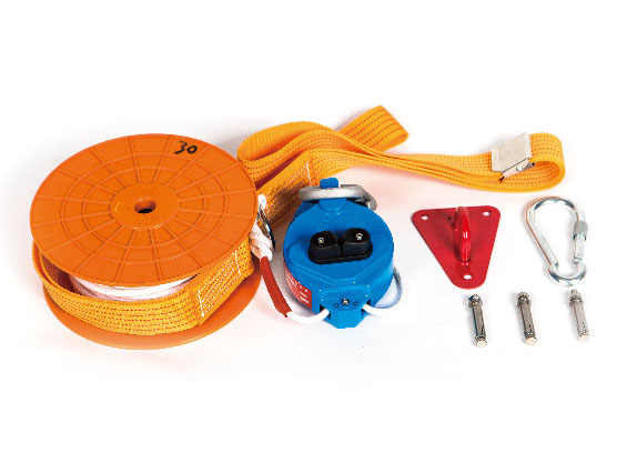 ·救生緩降器是一種可使人沿(隨)繩(帶)緩慢下降的逃生裝置。一般由掛鉤(或吊環(huán))吊帶、繩索及速度控制器等組成,它可有專用安裝器具安裝在建筑物窗口、陽臺(tái)或樓房平頂?shù)忍?,也可安裝在舉高消防車上,營(yíng)救處于高層建筑物火災(zāi)中的受難人員。