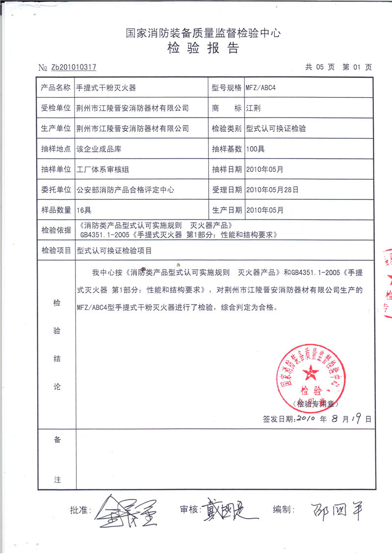 干粉4kg檢驗(yàn)報告(型式試驗(yàn))