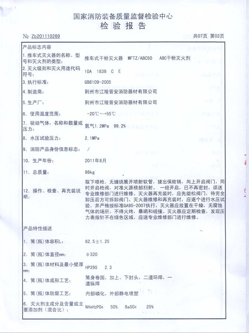 MFTZ50型 推車干粉滅火器檢驗報告(型式試驗)