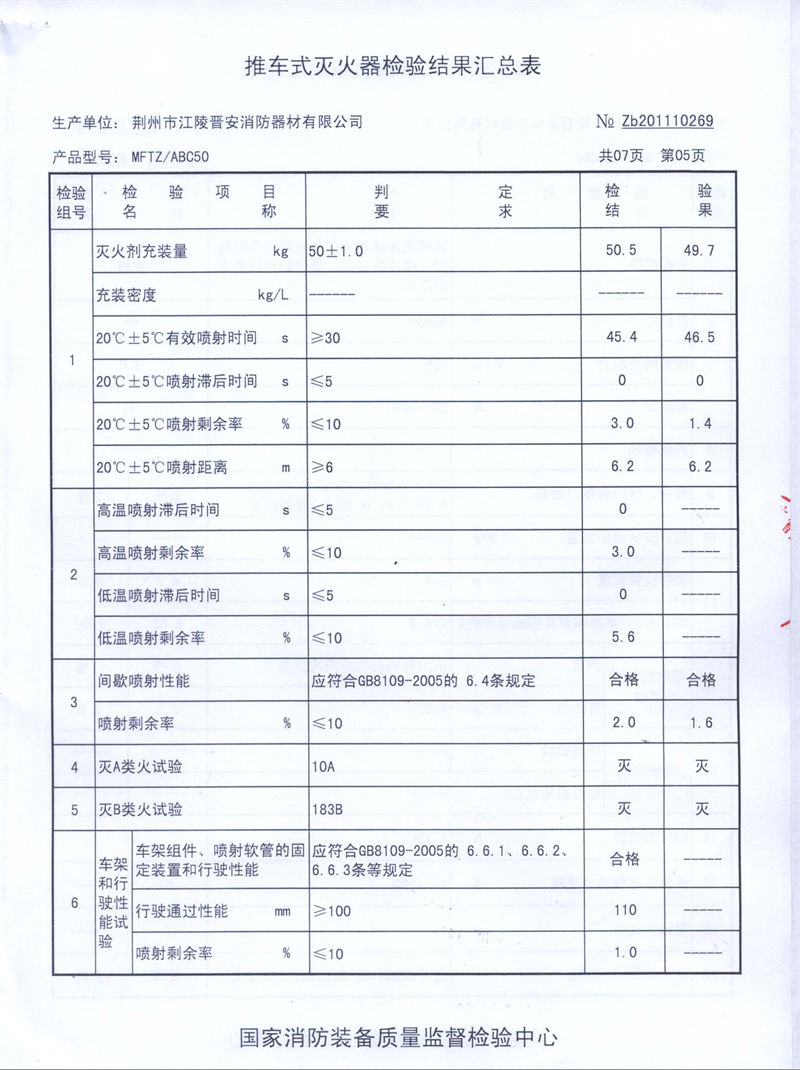 MFTZ50型 推車干粉滅火器檢驗報告(型式試驗)