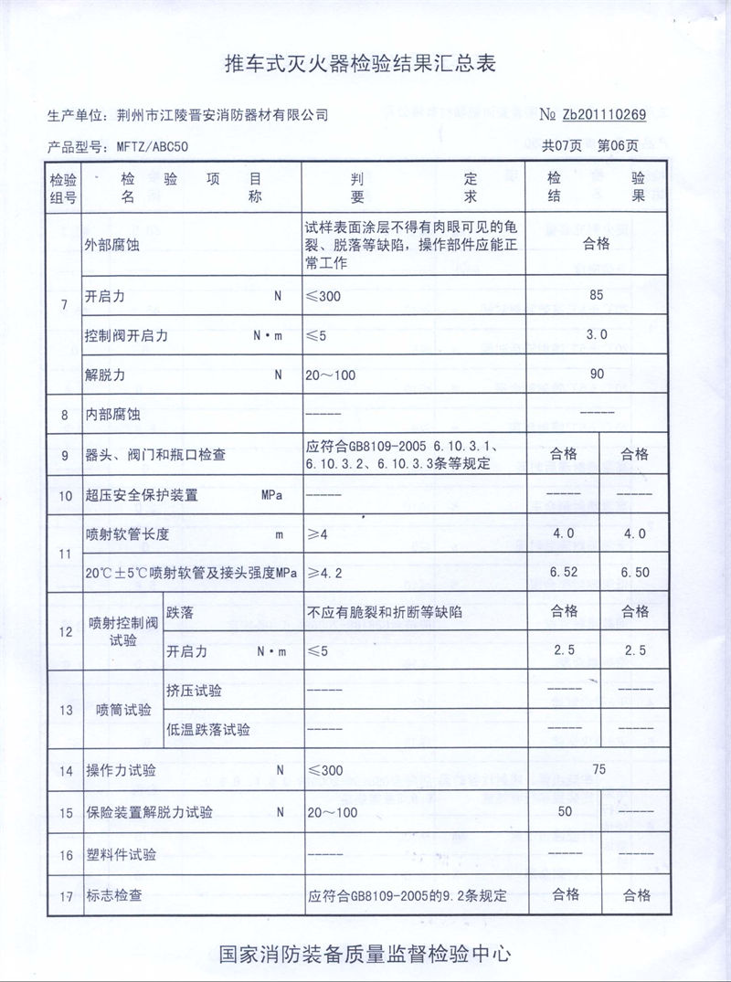 MFTZ50型 推車干粉滅火器檢驗(yàn)報(bào)告(型式試驗(yàn))