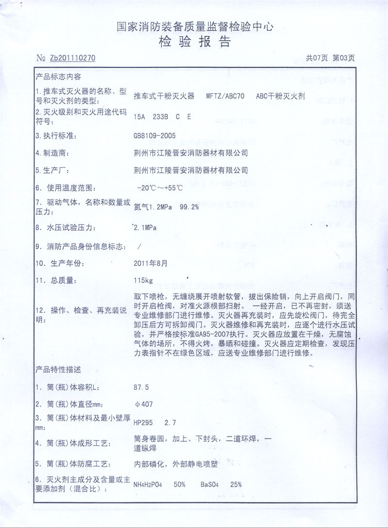 MFTZ70型 推車(chē)干粉檢驗(yàn)報(bào)告(型式試驗(yàn))